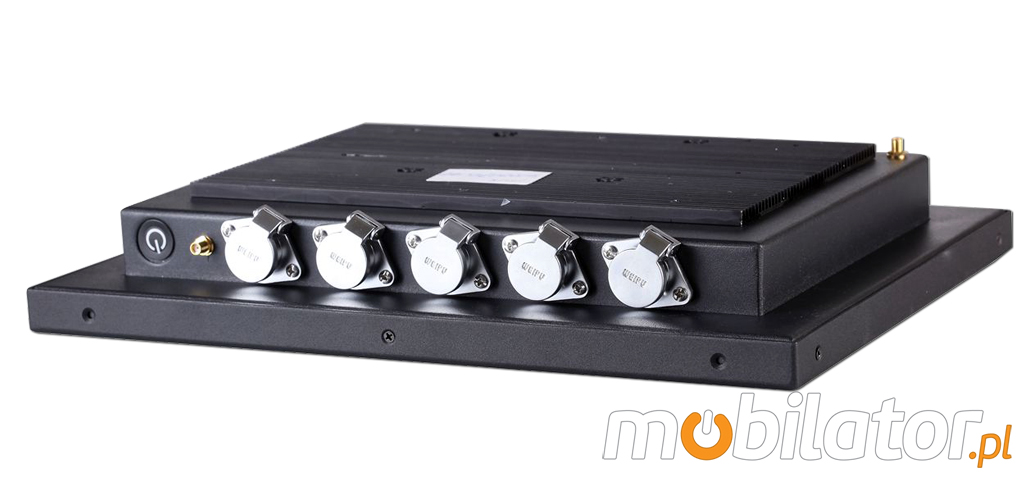 Zintegrowana karta sieciowa Intel RTL8111E 1000M LAN 1xRJ-45, WIFI umożliwia podłączenie urządzenia do sieci. Komputer wyposażony jest w: jedno złącze LAN, w jeden port COM(RS232), jedno wyjście VGA, dwa porty USB 2.0 (opcja USB 3.0) oraz w przełącznik zasilania (przykręcany). Opcjonalnie w tym modelu możemy wybrać dodatkowo port 1xCOM(RS232) lub 2xUSB.