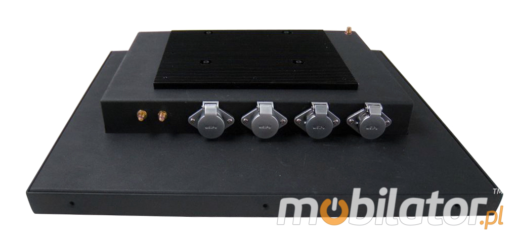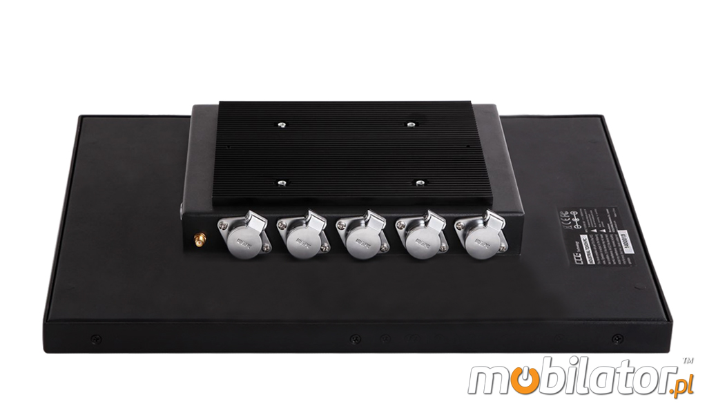 Zintegrowana karta sieciowa Intel RTL8111E 1000M LAN 1xRJ-45, WIFI umożliwia podłączenie urządzenia do sieci. Komputer wyposażony jest w: jedno złącze LAN, w jeden port COM(RS232), jedno wyjście VGA, dwa porty USB 2.0 (opcja USB 3.0) oraz w przełącznik zasilania (przykręcany). Opcjonalnie w tym modelu możemy wybrać dodatkowo port 1xCOM(RS232) lub 2xUSB.