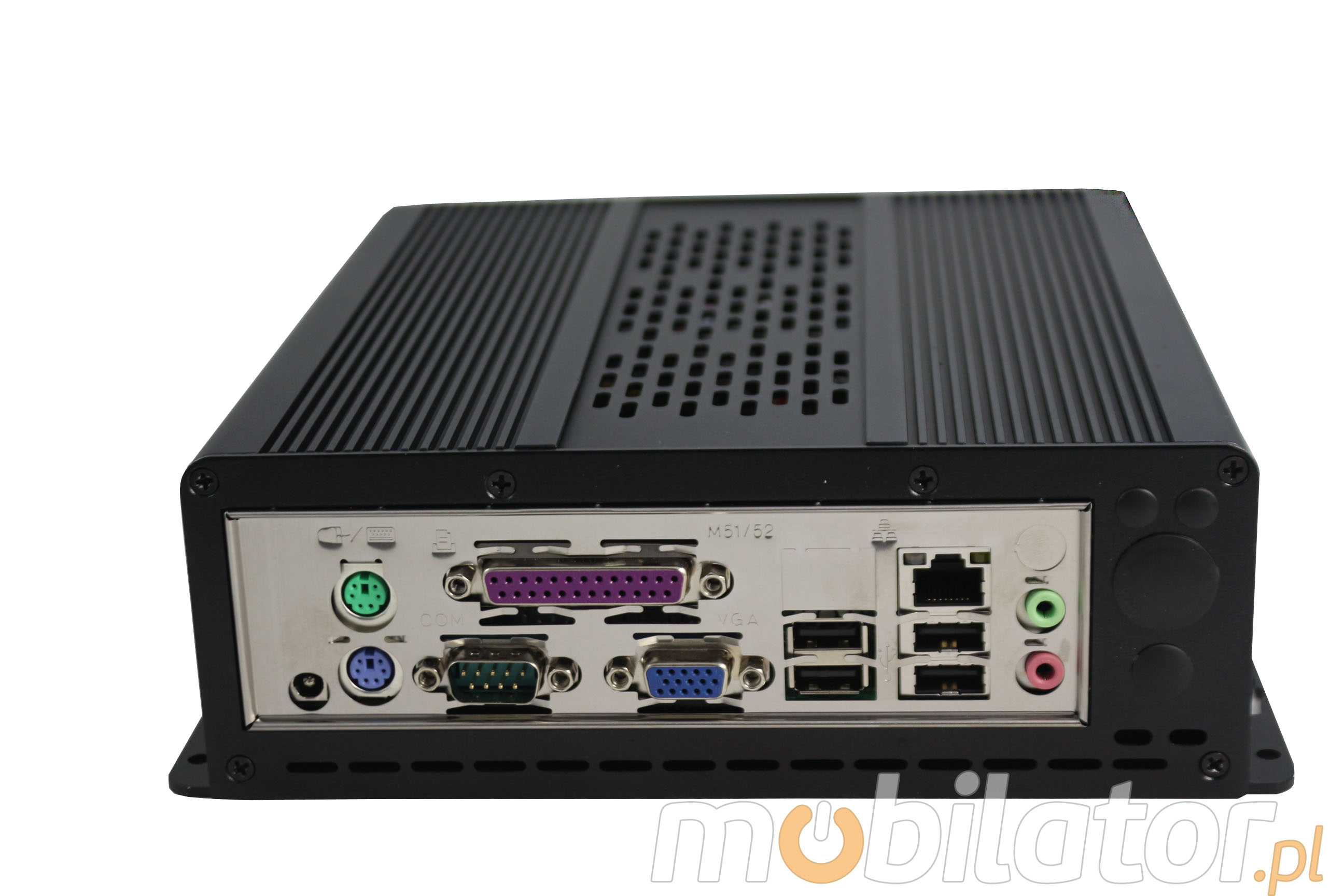 Zintegrowana karta sieciowa - Intel RTL8105E 100M Lan (opcjonalnie moduł WiFi) umożliwiaja podłączenie urządzenia do sieci. Komputer wyposażony jest w: jedno złącze LAN, dwa porty COM(RS232), jedno wyjście VGA, sześć portów USB 2.0, dwa wyjścia Audio, dwa wejścia mikrofonowe oraz złącza/konektory wbudowane na płycie głównej: dwa wyjścia PowerOUT, cztery złącza USB2.0, jedno złącze SIM, jedno złącze JVGA, jedno złącze GPIO, jedno złącze LVDS.