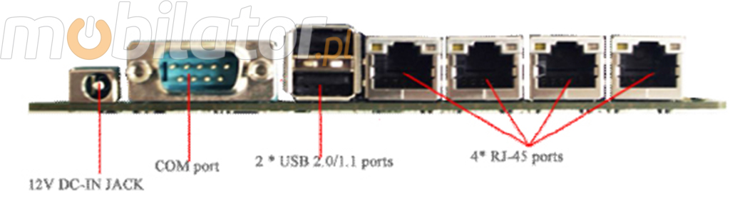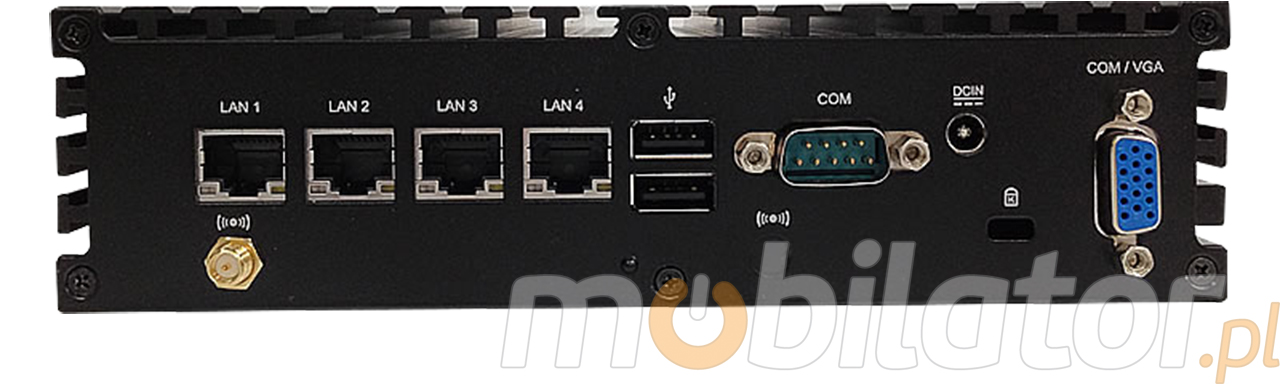 Zintegrowana karta sieciowa Realtek RTL8111EVL PCI-E Gigabit Ethernet LAN oraz moduł WiFi umożliwia podłączenie urządzenia do sieci. Komputer wyposażony jest w: osiem złącza LAN, jeden port COM(RS232), jedno wyjścia VGA, cztery porty USB 2.0.