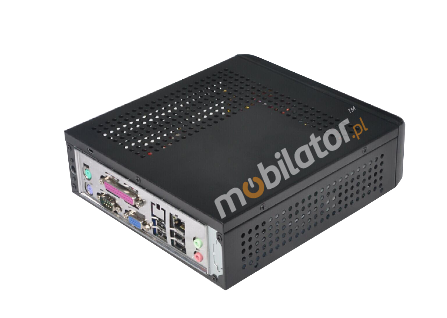 Zintegrowana karta sieciowa - INTEL 8105E - 10/100/1000 oraz moduł WiFi umożliwiaja podłączenie urządzenia do sieci. Komputer wyposażony jest w: jedno złącze LAN, jedno wyjście VGA, cztery porty USB 2.0, jeden port COM(RS232), dwa porty PS/2, jeden port LPT, jedno wejście Audio, jedno wejście mikrofonowe oraz złącza/konektory.