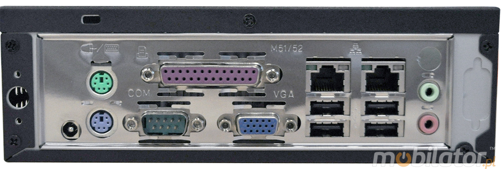 Zintegrowana karta sieciowa - Intel RTL8111DL 100M Lan umożliwiaja podłączenie urządzenia do sieci. Komputer wyposażony jest w: dwa złącza LAN, cztery porty USB 2.0, dwa porty PS/2, jedno wyjście LPT, jedno wyjście VGA, jedno złącze COM(RS232), siedmiokanałowe wyjście Audio, jedno wejście mikrofonowe.