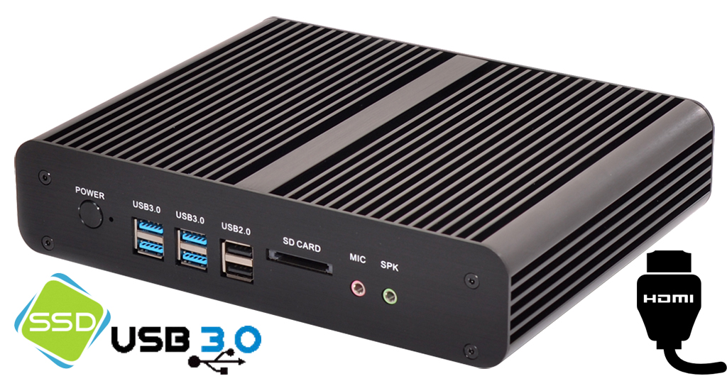 MiniPC przemysłowe z serii mBOX-T5010U oparte są na wydajnych procesorach oraz wysokiej jakości podzespołach. Mini komputery zamknięte są w niewielkich przemysłowych obudowach, które doskonale odprowadzają ciepło z wnętrz urządzeń. Szeroki wybór modeli mBOX oraz możliwość zmiany konfiguracji, pozwalają na optymalny dobór mini komputera do aplikacji multimedialnych i przemysłowych. Największe zalety tych urządzeń to niewielkie rozmiary, wydajność oraz energooszczędność. Dodatkowa para kątowników przy spodzie obudowy zwiększa możliwości montażu w wszelkiego rodzaju miejscach i pozycjach. Oferowany model mini PC został selektywnie dobrany i skonfigurowany specjalnie do wymagań systemów Digital Signage, automatów do gier, automatów rozrywkowych, kiosków informacyjnych oraz systemów automatyki przemysłowej.