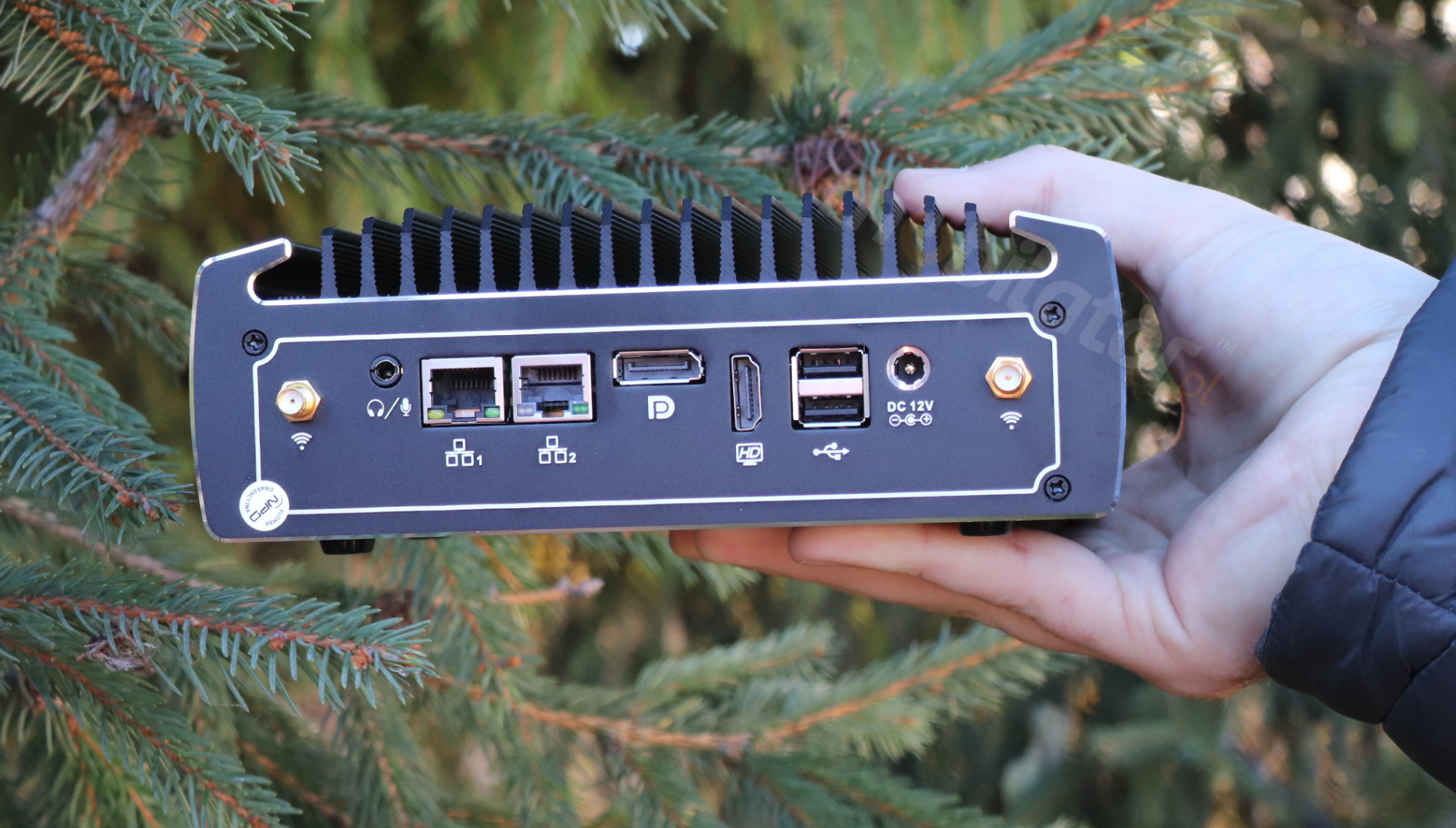 2x LAN | 1x HDMI | 1x DP | 1x Audio + Mic | 2x USB 2.0 | 1x Zasilanie 12V |