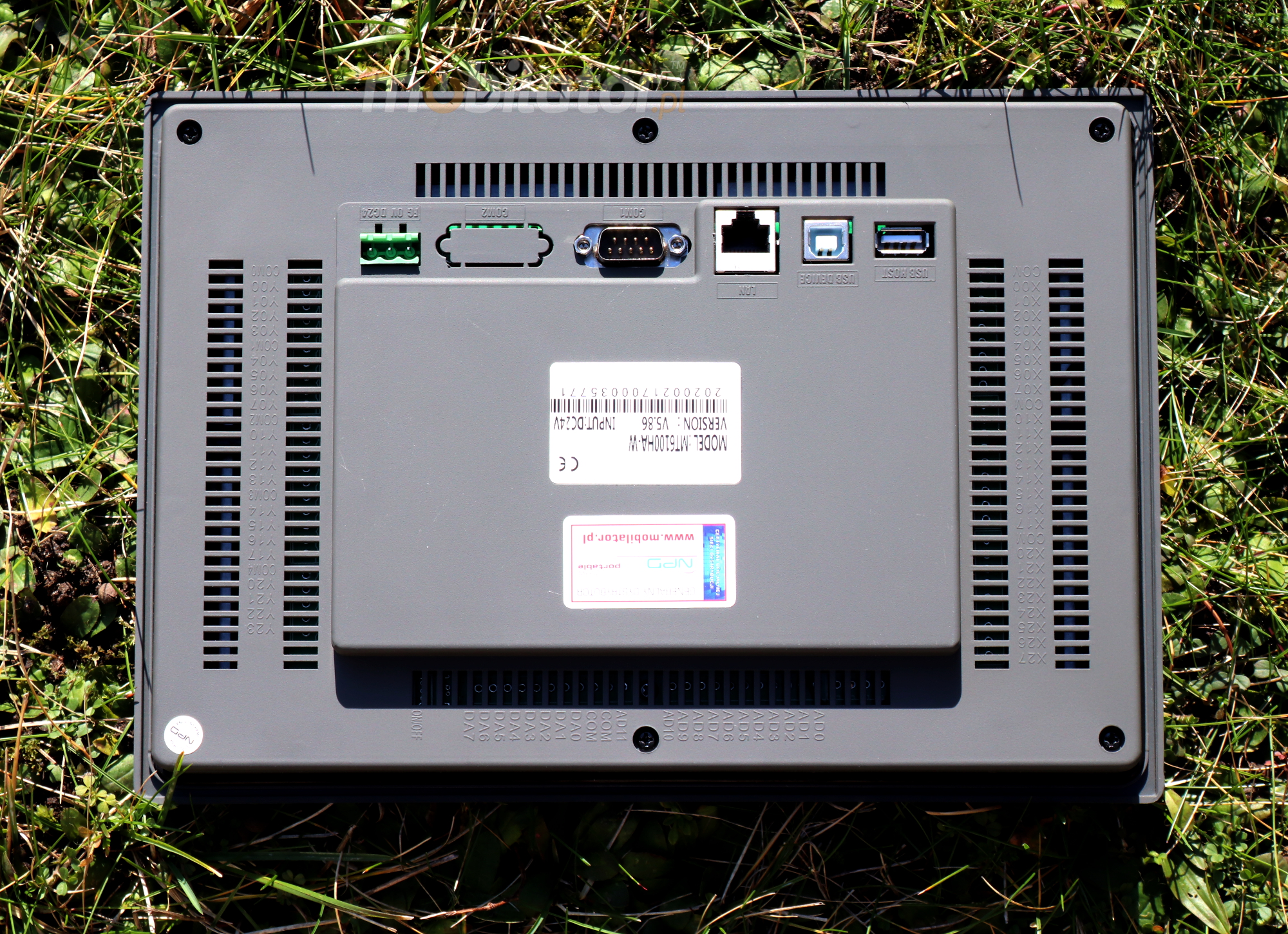Obudowa HMI została wykonana ze specjalistycznej mieszanki PC/ABS (Poliwęglan/akrylonitrylo-butadienowo-styren) zapewniając urządzeniu bardzo dużą odporność na uszkodzenia mechaniczne. Dzięki takiej konstrukcji jest on w każdej chwili gotowy do eksploatacji nawet w ekstremalnych warunkach, takich jak upał, zimno czy wibracje. Dodatkowo przedni panel urządzenia posiada międzynarodową normę IP65, co potwierdza odporność na wodę i całkowią ochronę przed pyłem.