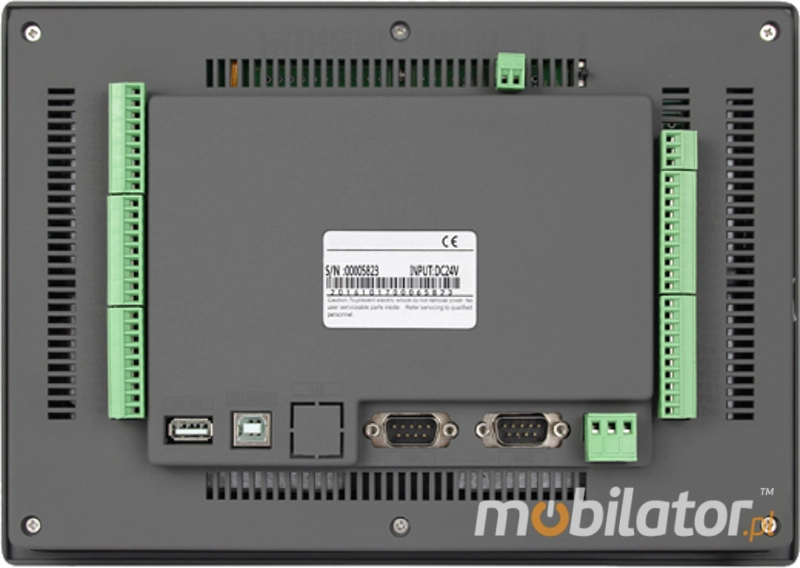 Obudowa HMI została wykonana ze specjalistycznej mieszanki PC/ABS (Poliwęglan/akrylonitrylo-butadienowo-styren) zapewniając urządzeniu bardzo dużą odporność na uszkodzenia mechaniczne. Dzięki takiej konstrukcji jest on w każdej chwili gotowy do eksploatacji nawet w ekstremalnych warunkach, takich jak upał, zimno czy wibracje. Dodatkowo przedni panel urządzenia posiada międzynarodową normę IP65, co potwierdza odporność na wodę i całkowią ochronę przed pyłem.