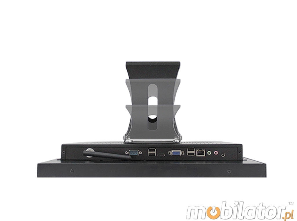 Złącza: Zintegrowana karta sieciowa Intel RTL8111E 1000M LAN 1xRJ-45, WIFI umożliwia podłączenie urządzenia do sieci. Komputer wyposażony jest w: jedno złącze LAN, w jeden port COM(RS232), jedno wyjście VGA, jedno wyjście HDMI, cztery porty USB 2.0, jedno wejście Audio, jedno wejście mikrofonowe oraz w złącze zasilania.