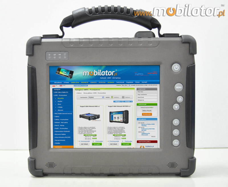 Ten niewielkich rozmiarów (259x215x45mm) tablet (nieco mniejszy niż kartka formatu A4) zadziała tam gdzie inny sprzęt dawno odmówiłby posłuszeństwa. Dzięki szczelnej obudowie wykonanej ze stopu magnezu i aluminium, dodatkowym gumowym narożnikom oraz gumowym zabezpieczeniom portów, komputer jest bardzo odporny na uszkodzenia mechaniczne, brud, kurz czy wilgoć i potrafi pracować w temperaturach od -20 do 60 stopni Celsjusza (tylko z dyskiem SSD). Stopień ochrony określony zostały przez normę MIL-810F.