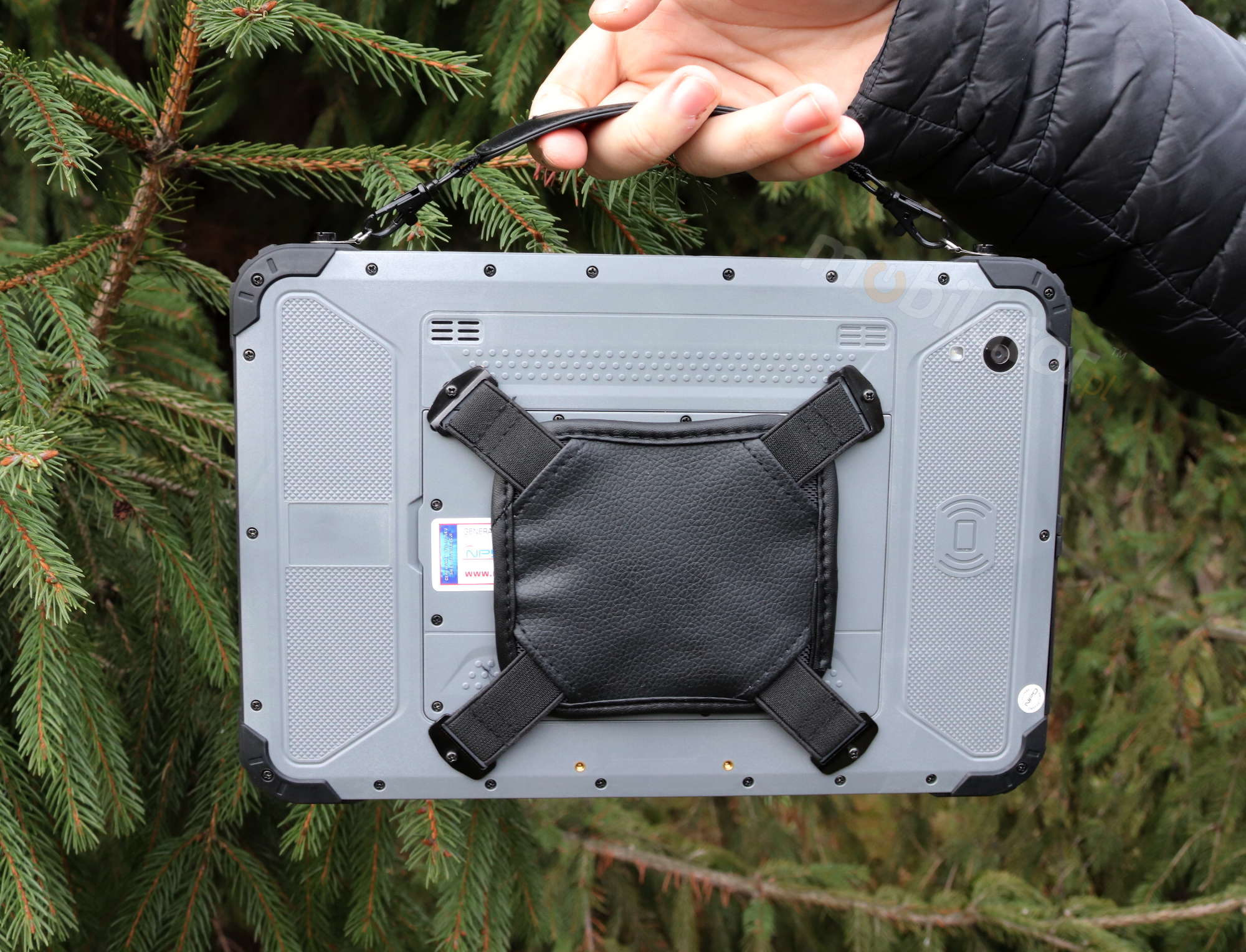Uchwyt na nadgarstek zwiększa komfort i pewność trzymania tabletu podczas długotrwałej pracy.