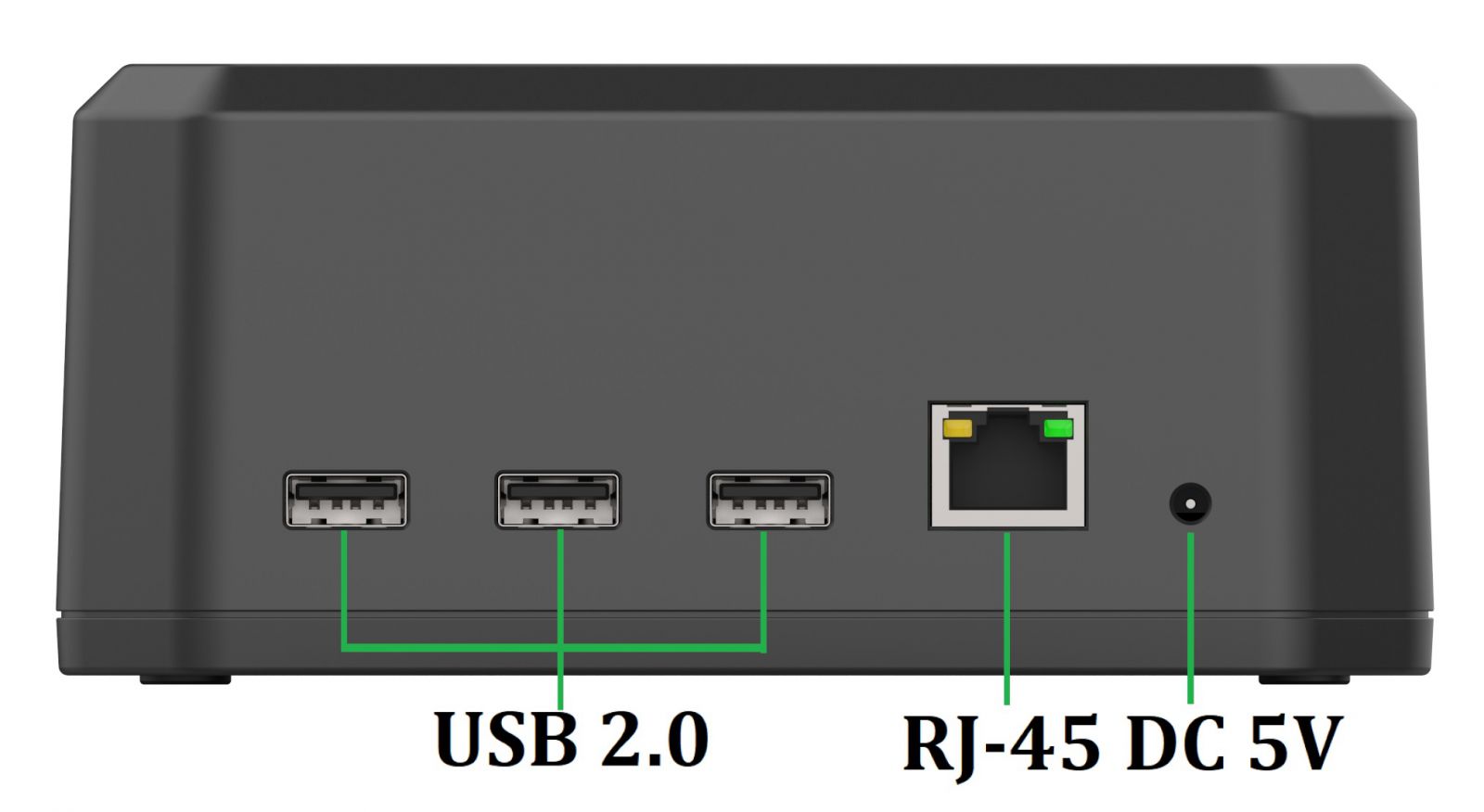 Złącza: 3x USB 2.0, 1x RJ-45, 1x DC 5V