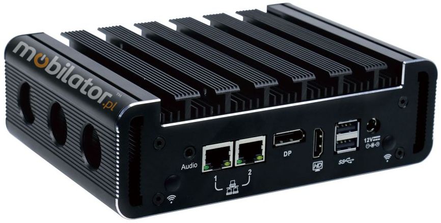 2x LAN | 1x HDMI | 1x DP | 1x Audio | 2x USB 2.0 | 1x Zasilanie 12V