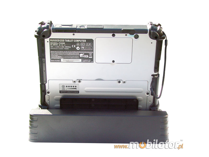 Clevo T890M to tablet wyposażony w GPS oraz kamerę 2Mega pixeli w wykonaniu pancernym. Ten niewielki komputerek wykonany jest z bardzo wytrzymałych materiałów. Jest doskonale zabezpieczony przed upadkami, wstrząsami czy wibracjami. Niegroźna jest mu także woda (IP54) czy niskie temperatury. Wyposażony jest w szybkie pamięci RAM DDRII z możliwością rozbudowy do 2GB oraz dyski HDD lub SSD z opcjonalna obudową anty wstrząsową.