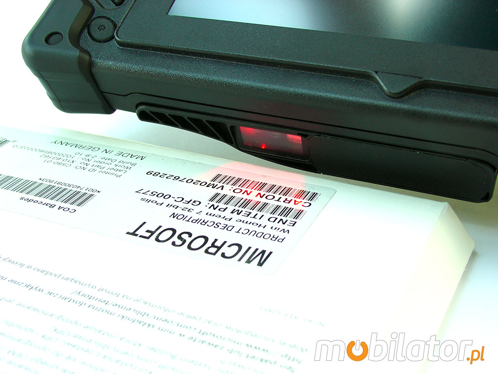 Czytnik kodów kreskowych 2D oraz czytnik kart MSR został umiejscowiony w górnej części tabletu przemysłoweg po to by zapewnić wygodę w codziennym użytkowaniu w dowolnym położeniu. Dolna część została zarezerwowana dla złącza do stacji dokującej za pomocą, której tablet może zyskać na swojej funkcjonalności.
