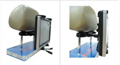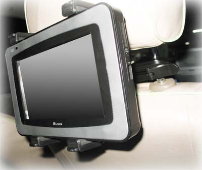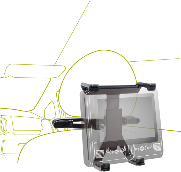 Uchwyt mocuje się do zagłówków w samochodzie.
