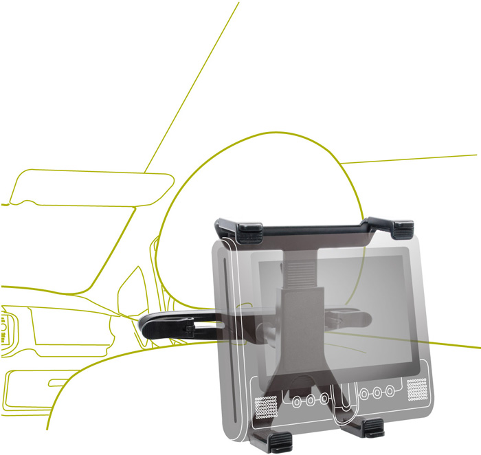Uchwyt mocuje siê do zag³ówków w samochodzie.