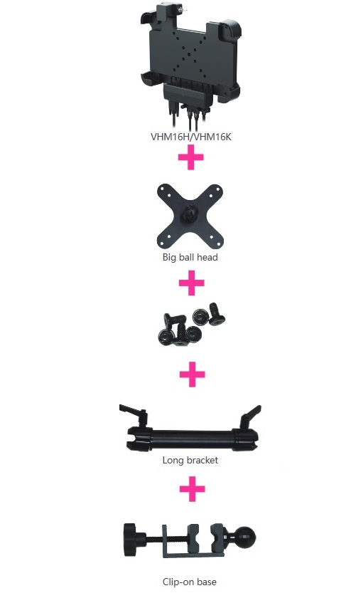 Uchwyt samochodowy długi EM-VHM75H - Emdoor Q75Poszczególne złącza mogą być wykorzystane w następujący sposób: