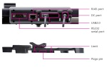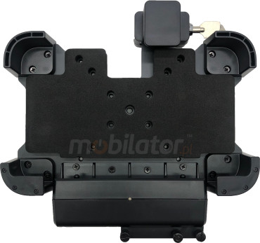 W uchwycie istnieje możliwość wykorzystania czterech złączy: 1x RS232, 1x RJ-45 oraz 2x USB 2.0, które działają po podłączeniu DC (zasilania).