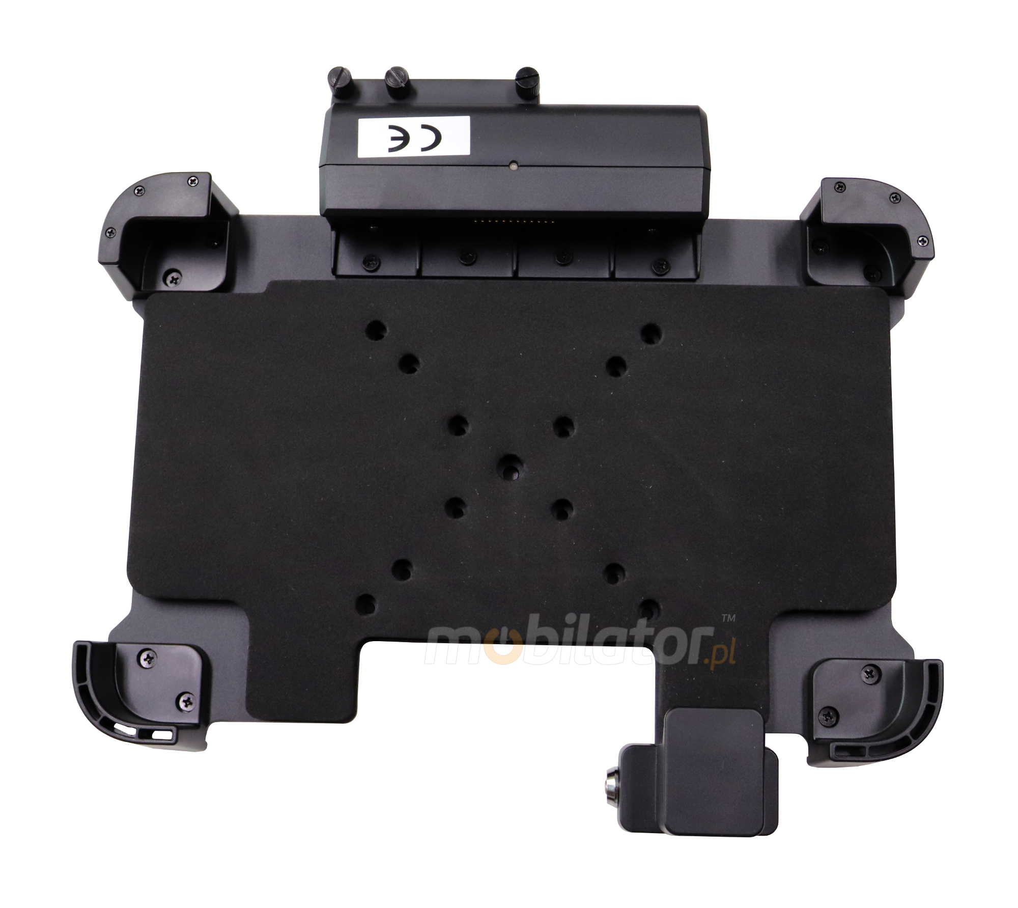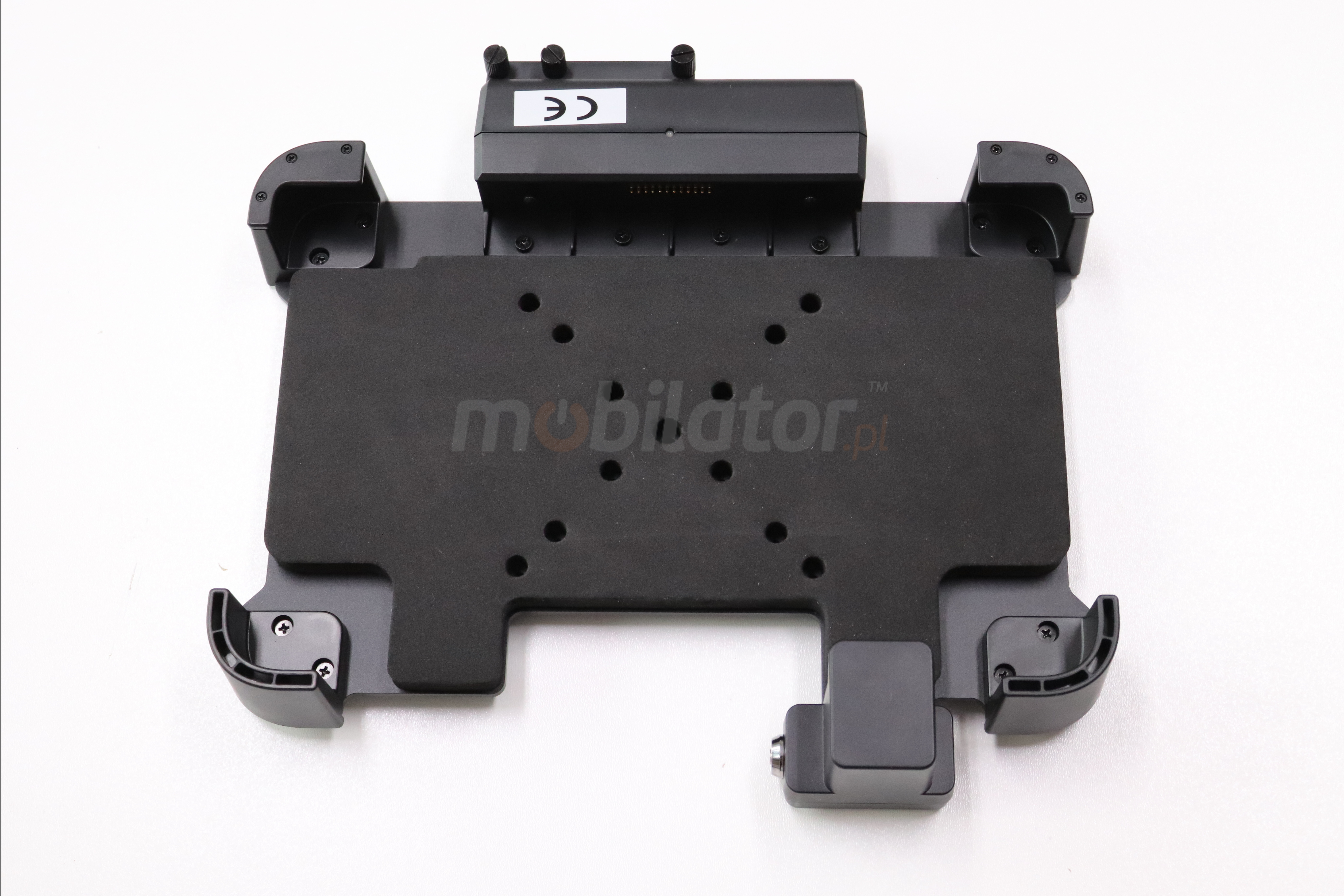 W uchwycie istnieje możliwość wykorzystania czterech złączy: 1x RS232, 1x RJ-45 oraz 2x USB 2.0, które działają po podłączeniu DC (zasilania).