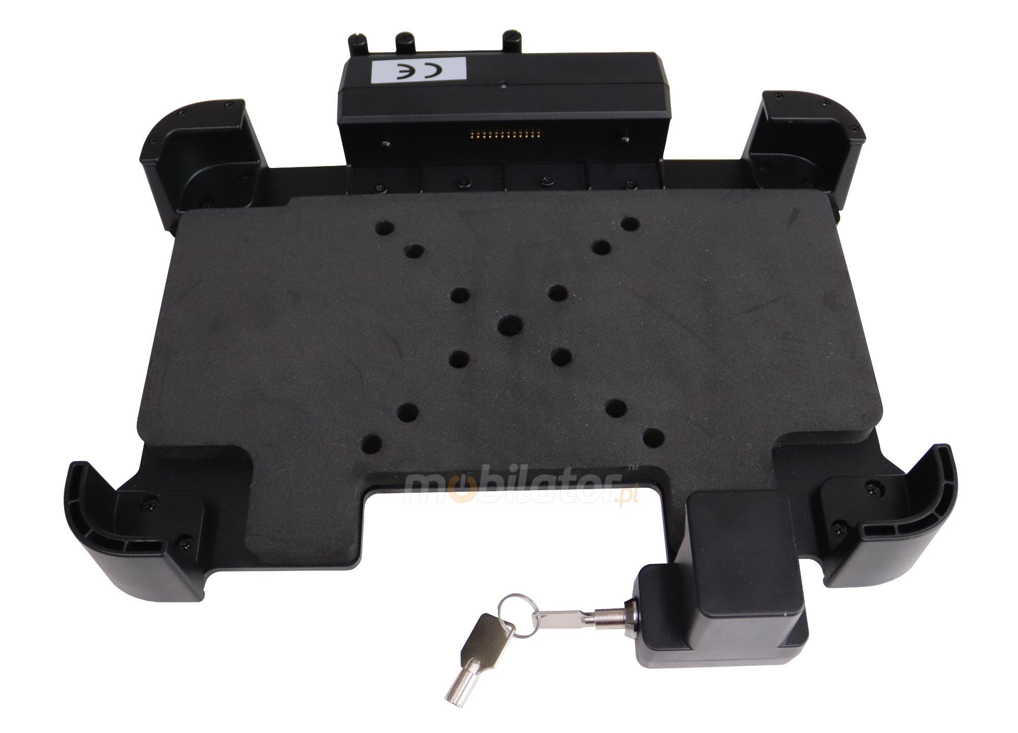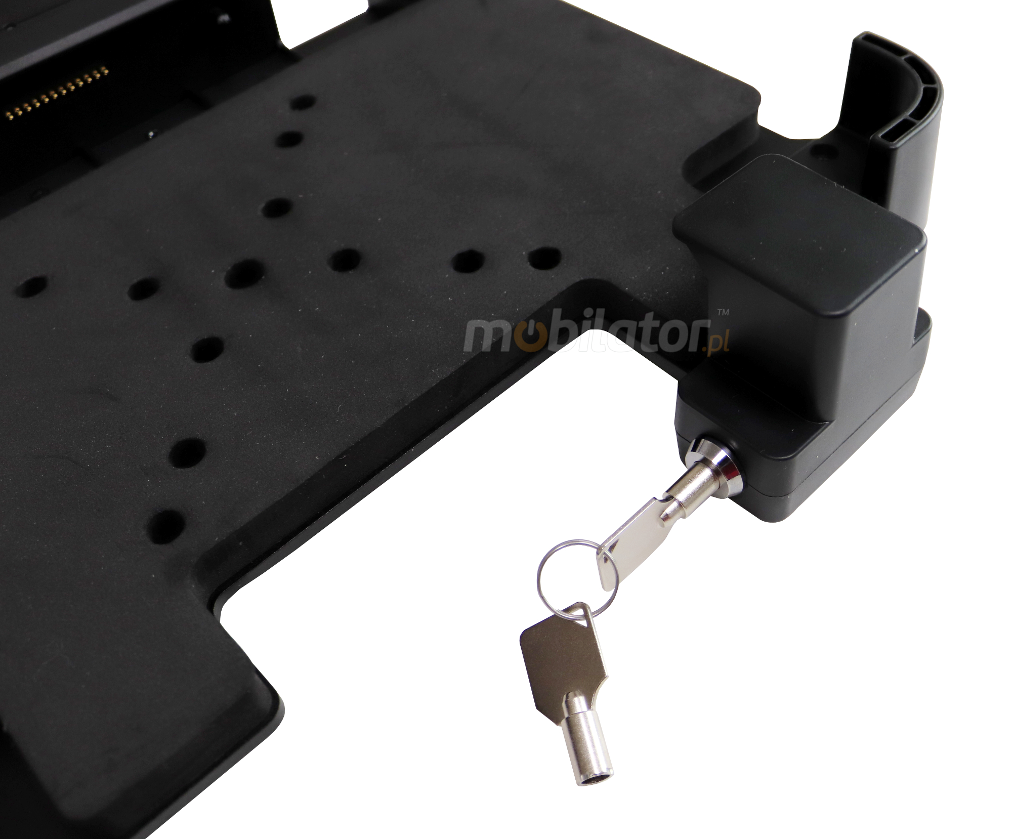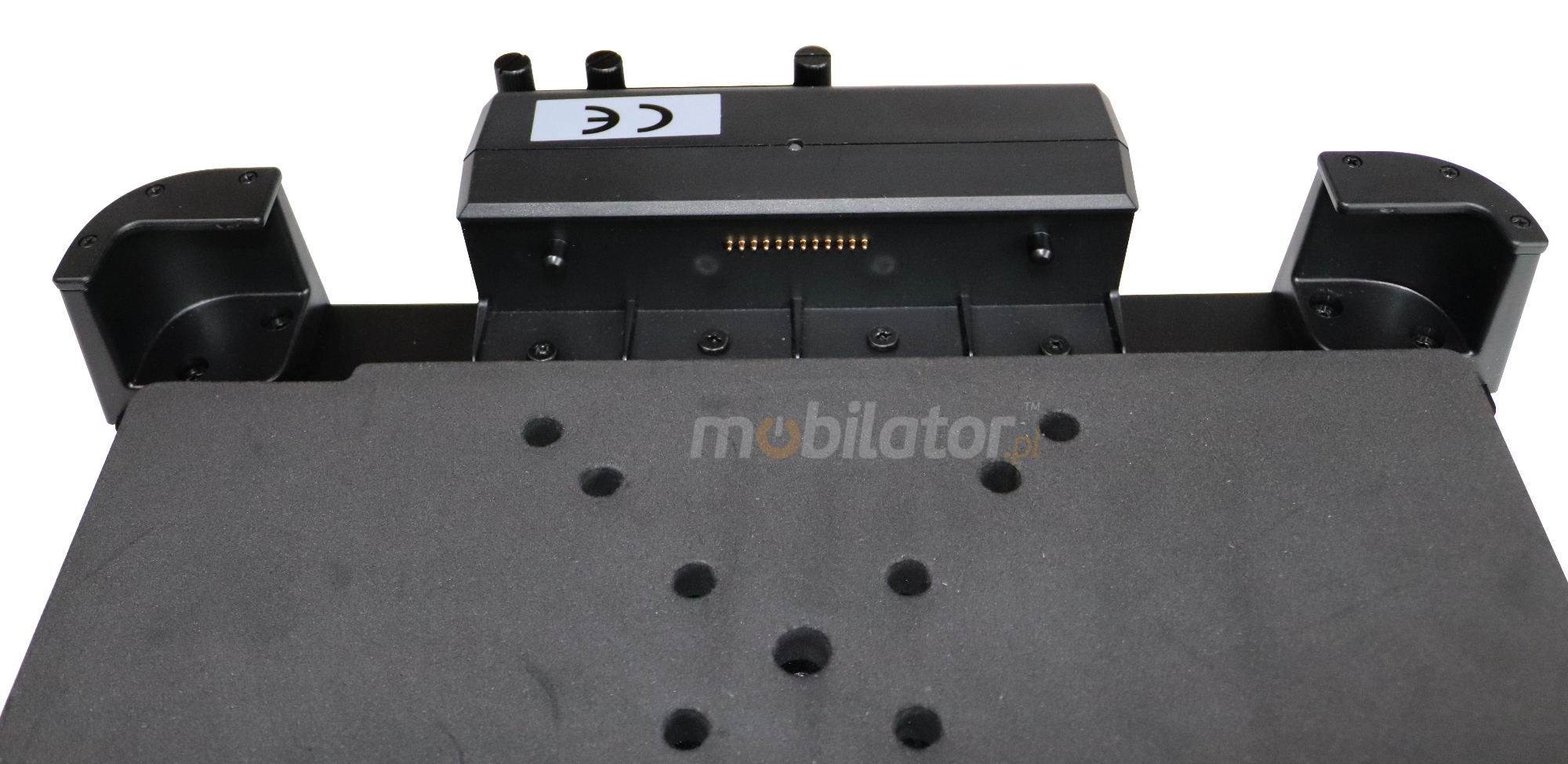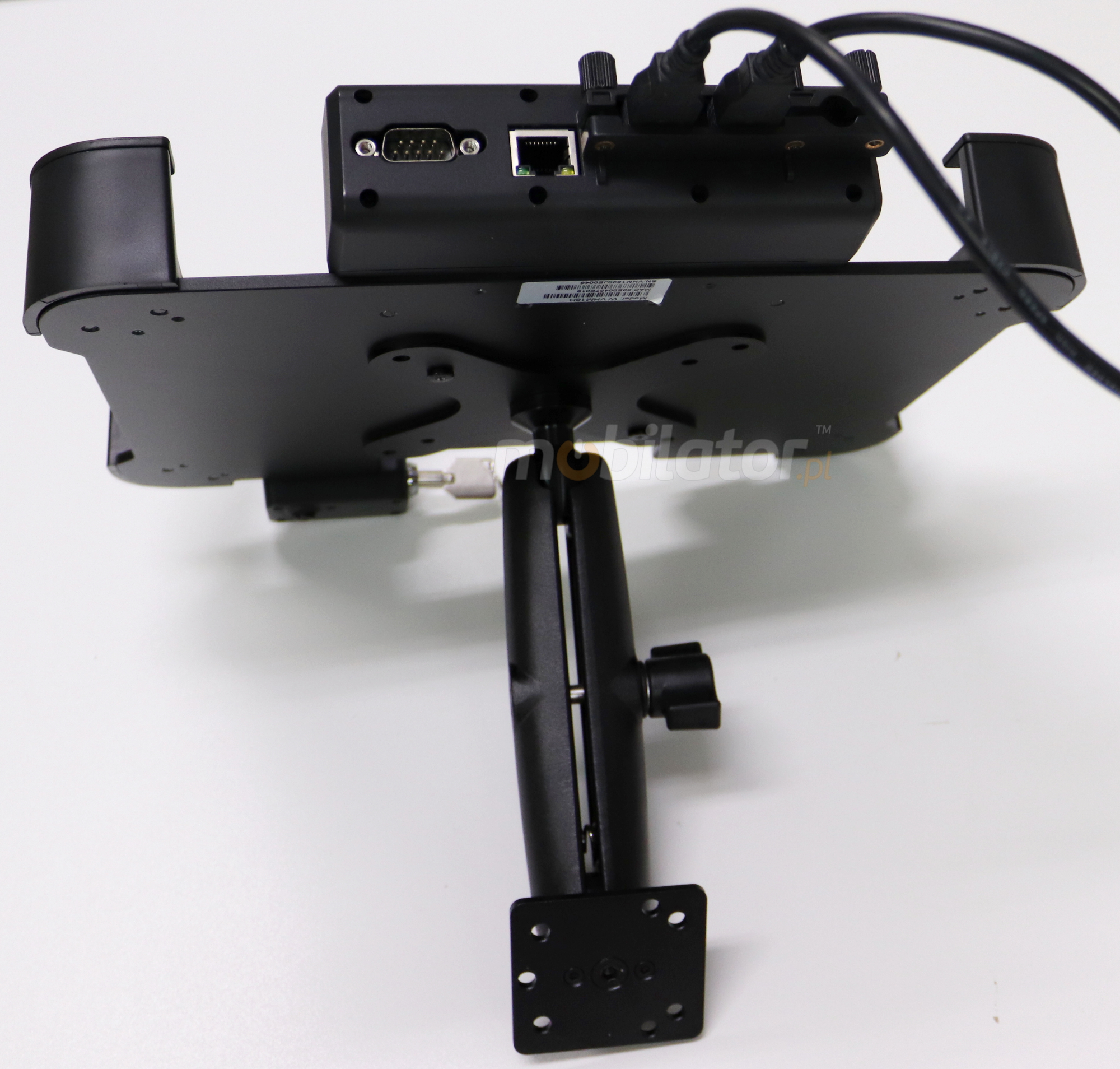 W uchwycie istnieje możliwość wykorzystania czterech złączy: 1x RS232, 1x RJ-45 oraz 2x USB 2.0, które działają po podłączeniu DC (zasilania).