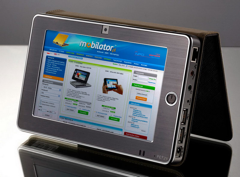 Niewielkie gabaryty oraz waga tego UMPC, pozwalaj± na nieograniczone podró¿owanie i przemieszczanie siê, a dotykowy 7"" ekran w pe³ni zastêpuje dodatkowe urz±dzenia peryferyjne (klawiatura, myszka).