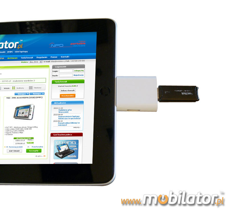 Dołączony do tabletu adapter USB pozwala na podłączenie wielu urządzeń peryferyjnych takich jak: