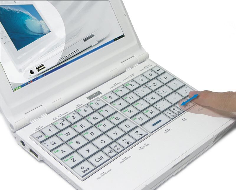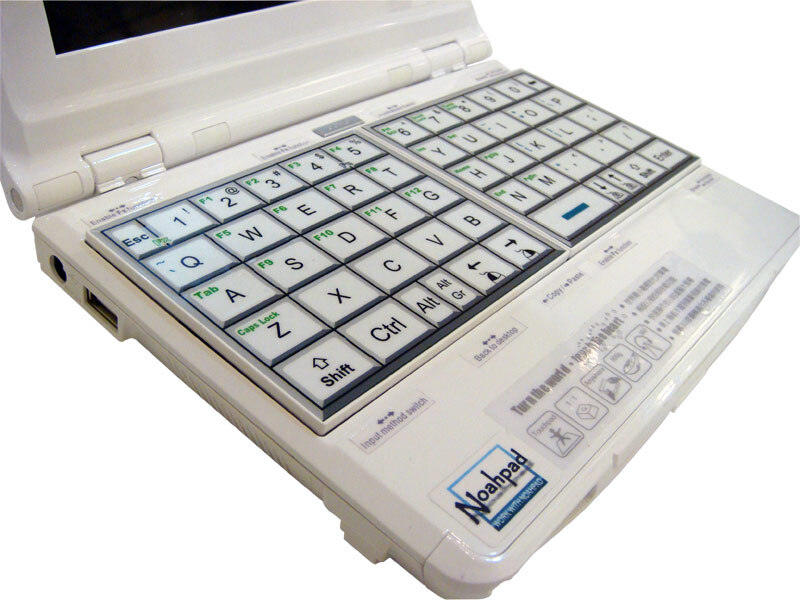 Klawiatura lekkiego Noahpada to całkowicie nowe, innowacyjne rozwiązanie. Składa się z dwóch touchpadów dzięki którym użytkownik może jednocześnie pisać, sterować kursorem oraz używać skrótów kalwiszowych. Obsługa laptopa jest bardzo prosta i wygodna a układ QWERTY daje taki sam komfort pracy jak na standardowej klawiaturze.