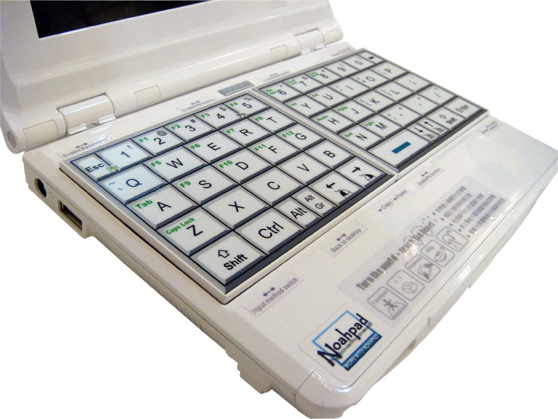 Klawiatura lekkiego Noahpada to ca³kowicie nowe, innowacyjne rozwi±zanie. Sk³ada siê z dwóch touchpadów dziêki którym u¿ytkownik mo¿e jednocze¶nie pisaæ, sterowaæ kursorem oraz u¿ywaæ skrótów kalwiszowych. Obs³uga laptopa jest bardzo prosta i wygodna a uk³ad QWERTY daje taki sam komfort pracy jak na standardowej klawiaturze.