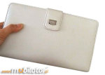 Pokrowiec jest idealnie dopasowany do urządzenia. Zastosowanie skóry najwyższej jakości i bardzo wytrzymałych szwów sprawia, iż etui będzie służyć przez długi czas! Zapięcie zabezpieczające UMPC w pokrowcu i zamykające klapkę jest wykonywane za pomocą mocnego, magnetycznego zatrzasku, ukrytego we wnętrzu pokrowca. Wewnętrzna strona pokrowca pokryta jest miękkim materiałem chroniącym przed zarysowaniami i dobrze trzymająca Viliv-a S7 w futerale.