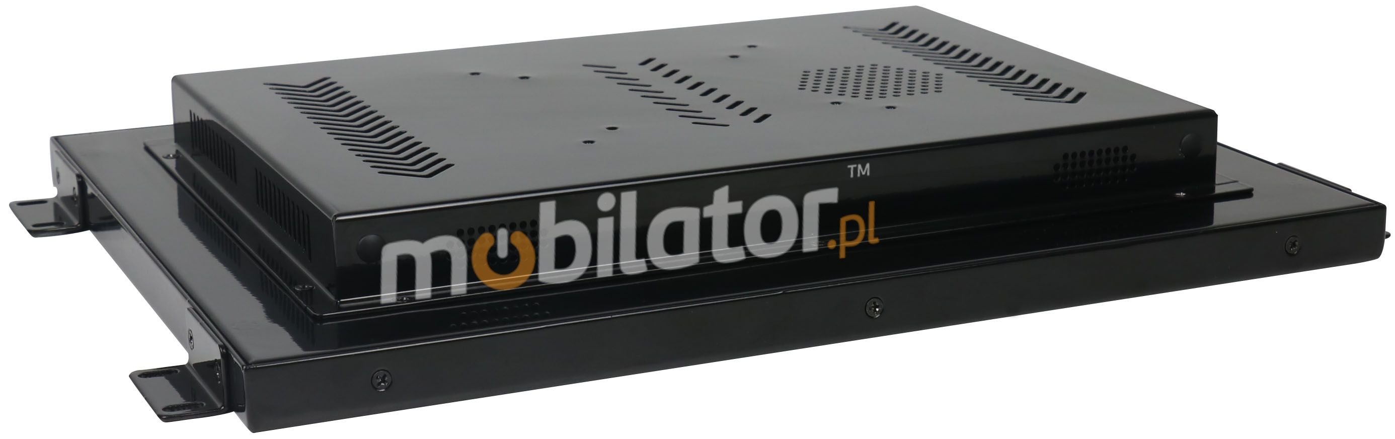 Panel PC posiada wysokiej jakości obudowę wykonaną ze stopów aluminium. Jest ona ważnym elementem systemu chłodzenia dzięki specjalnie zaprojektowanym wycięciom ułatwiającym obieg powietrza wewnątrz obudowy, wspomagając ciągle działający wentylator. Całościowy design urządzenia nastawiony jest na prostotę i funkcjonalność cenione wśród profesjonalistów.