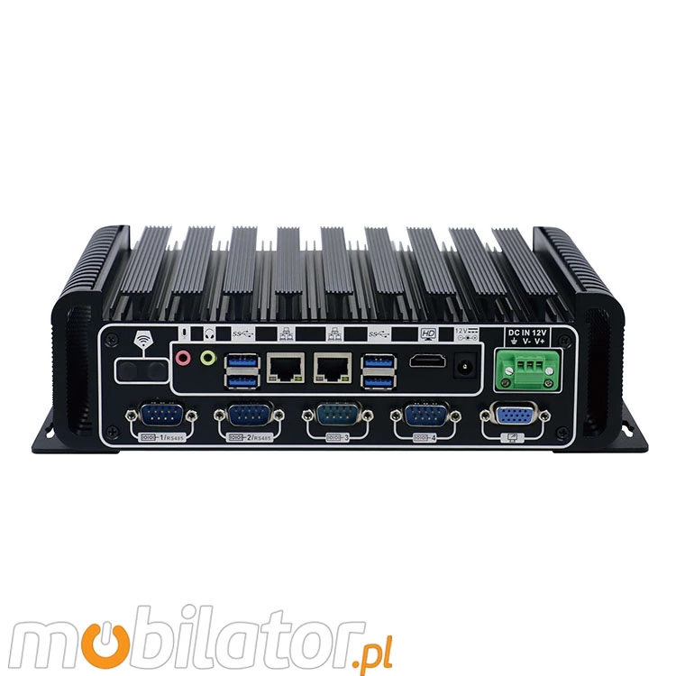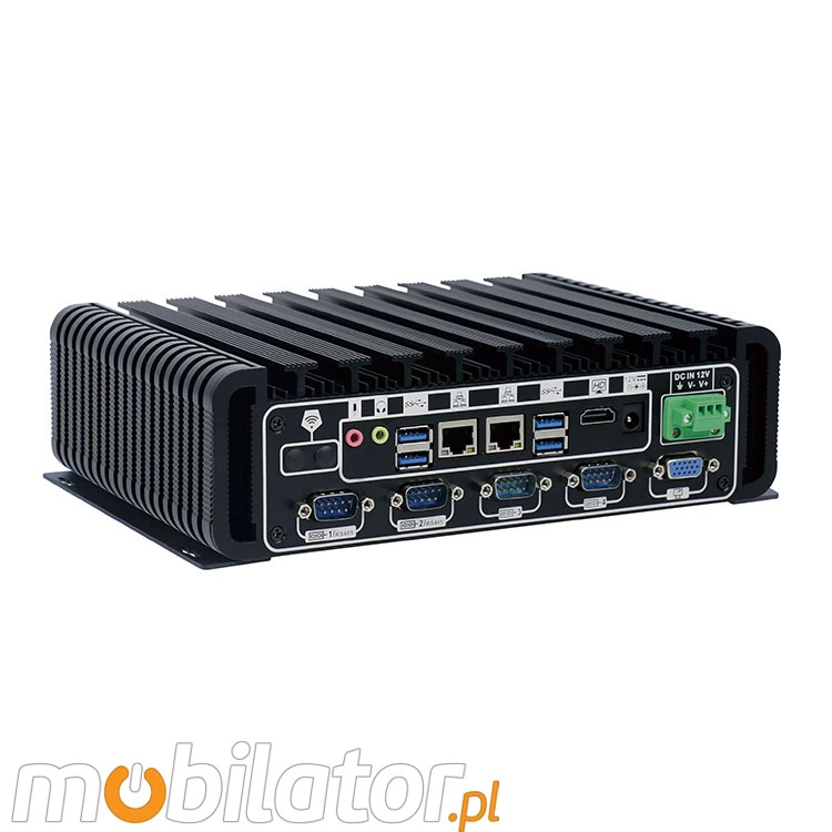 Zintegrowana karta sieciowa Intel i211AT 1000M Lan oraz moduł 4G umożliwiają podłączenie urządzenia do sieci. Komputer wyposażony jest w: dwa złącza LAN, cztery porty USB 2.0, cztery porty USB 3.0, jedno wyjście HDMI, jedno wyjście VGA, sześć portów COM (RS232) jedno wyjście audio, jedno wejście mikrofonowe.