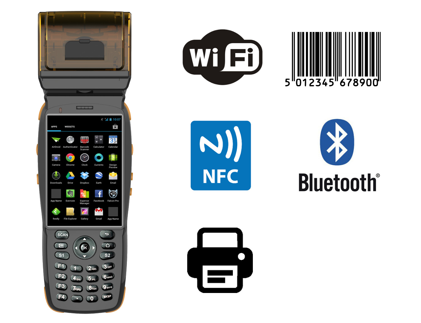 wodoodporny kolektor danych przemysłowy smartfon przmeysłowy drukarka termiczna nfc rfid skaner kodów kreskowych profesjonalny wytrzymały android wifi bluetooth ip65
