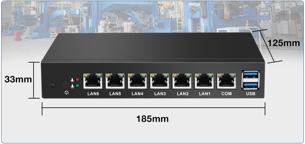MiniPC yBOX-X33 posiada wbudowane sześć kart sieciowych Intel, które mogą pracować w szybkiej sieci Gigabit Ethernet.