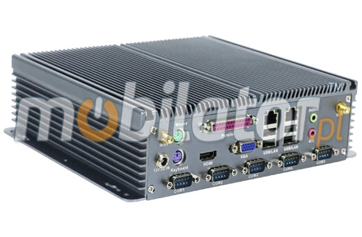 Zintegrowane karty sieciowe Intel RTL8111E 1000M Lan oraz moduł WiFi umożliwiają podłączenie urządzenia do sieci. Komputer wyposażony jest w: dwa złącza LAN, sześć portów COM, osiem portów USB 2.0, jeden port LPT jeden port VGA,jeden port HDMI, dwa porty PS/2, jedno wyjście audio oraz złącza wbudowane na płycie głównej: jedno wejście SIM, jeden port SATA, jeden port GPIO,jeden port LVDS oraz jeden port MINI-PCIE. PRZEDNI PANEL: