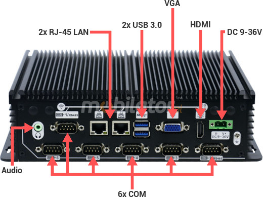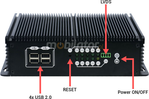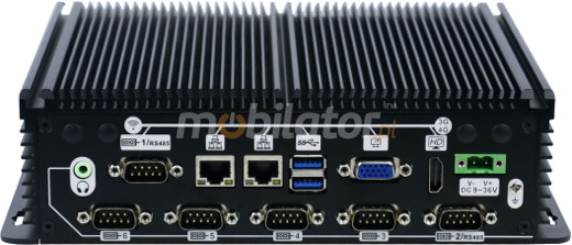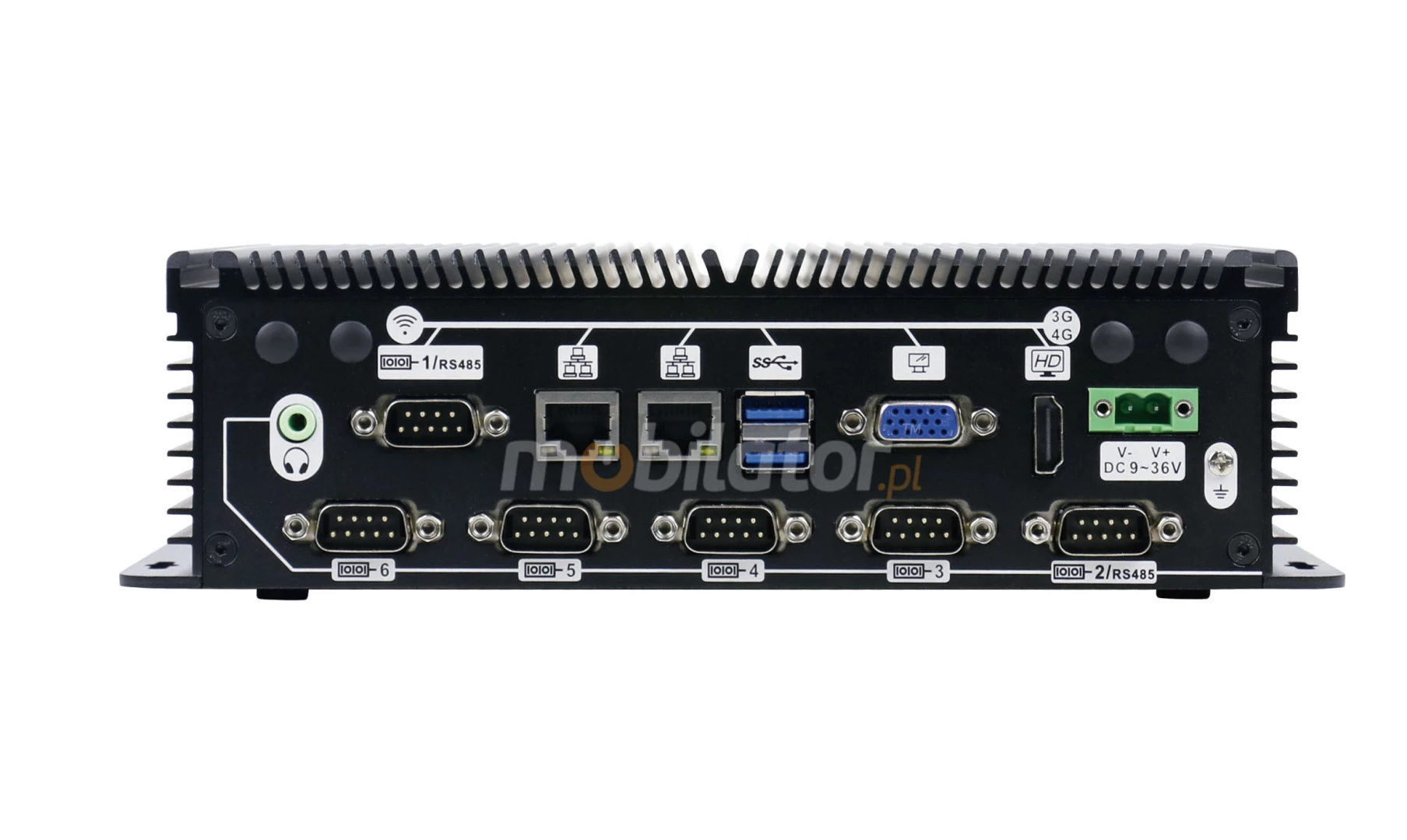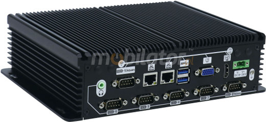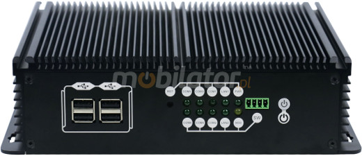 Szczegółowa specyfikacja urządzenia dostępna w zakładce "Dane techniczne".W przemysłowym Mini PC zastosowano sprawdzony system chłodzenia, oparty wyłącznie na elementach stałych, głównie radiatorach. W systemie tym wykorzystuje się zjawisko oddawania przez metale energii cieplnej do otoczenia – nie występują tu dodatkowe elementy ruchome w postaci np. wentylatorów. Takie rozwiązanie zapewnia bezgłośną pracę, mniejszą awaryjność oraz większą ochronę przed kurzem i innymi zabrudzeniami przy jednoczesnym zmniejszeniu ilości pobieranej energi.
