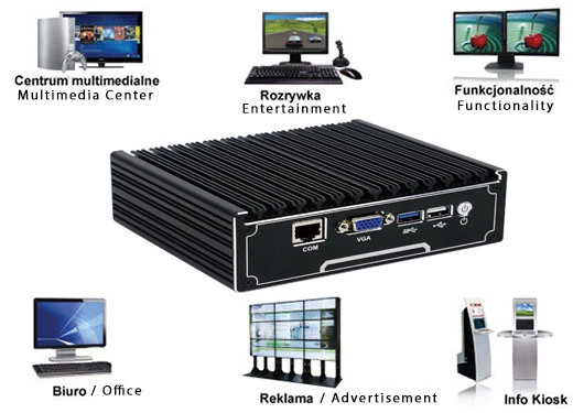 Przemysłowe Fanless Niewielkich wymiarów komputery przemysłowe przodują w środowiskach, w których dominują kurz, brud i wilgoć. Są idealne do zastosowań wymagających cichej pracy. Małe i niezawodne MiniPC korzystają z technologii heat-pipe i lamel z aluminium dla pasywnego chłodzenia. Wzmocniony mini Komputer Przemysłowy Fanless MiniPC IBOX-NM21 to seria urządzeń przeznaczonych do zastosowań przemysłowych, wymagających ciągłej pracy - 24 godziny, 7 dni w tygodniu. |