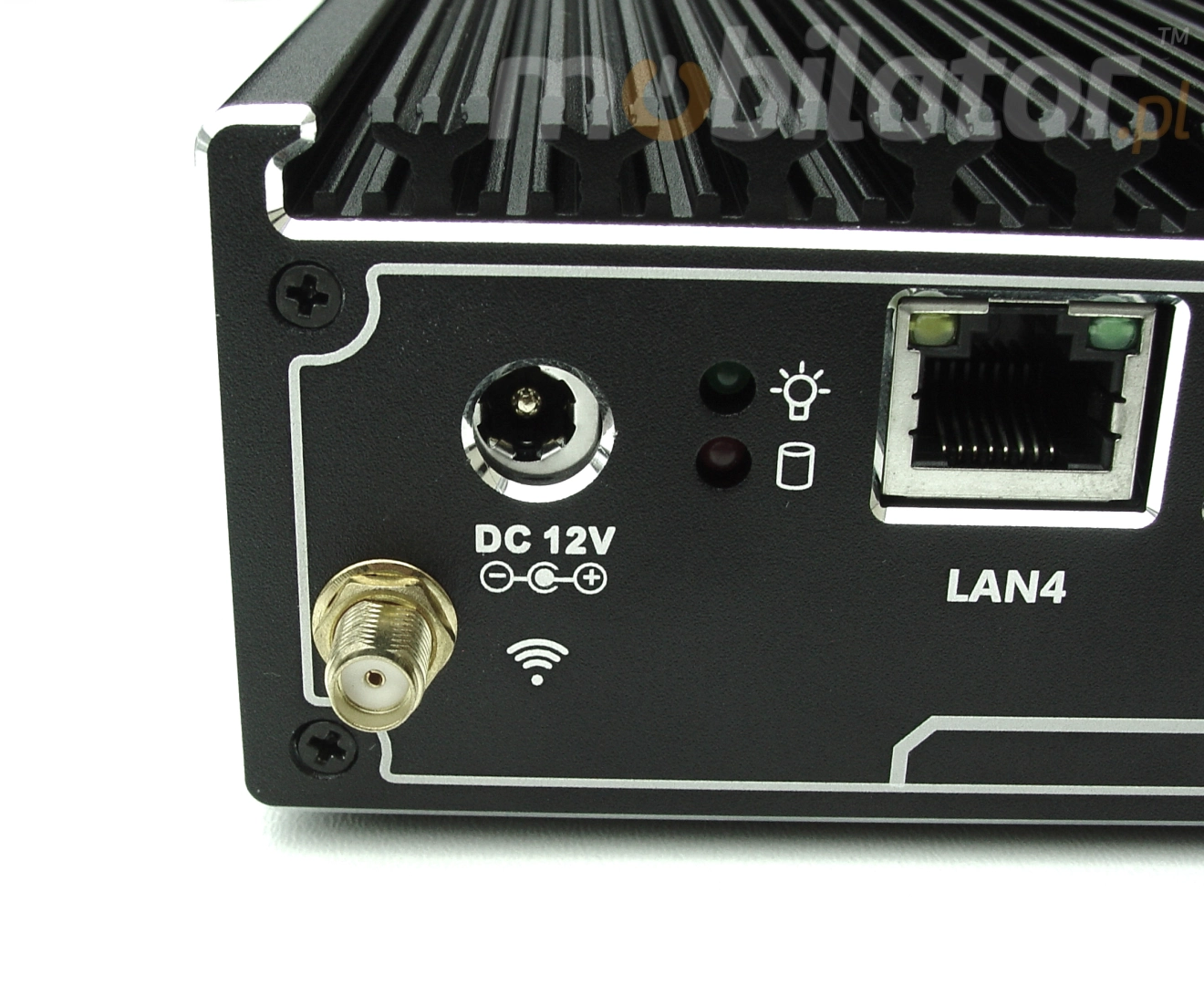 Zintegrowana karta sieciowa Intel 82583V 10/100/1000M LAN oraz moduł 3G umożliwiają podłączenie urządzenia do sieci. Komputer wyposażony jest w: cztery złącza LAN, jeden port USB 2.0, jeden port USB 3.0, jeden port COM RJ-45, jeden port VGA.