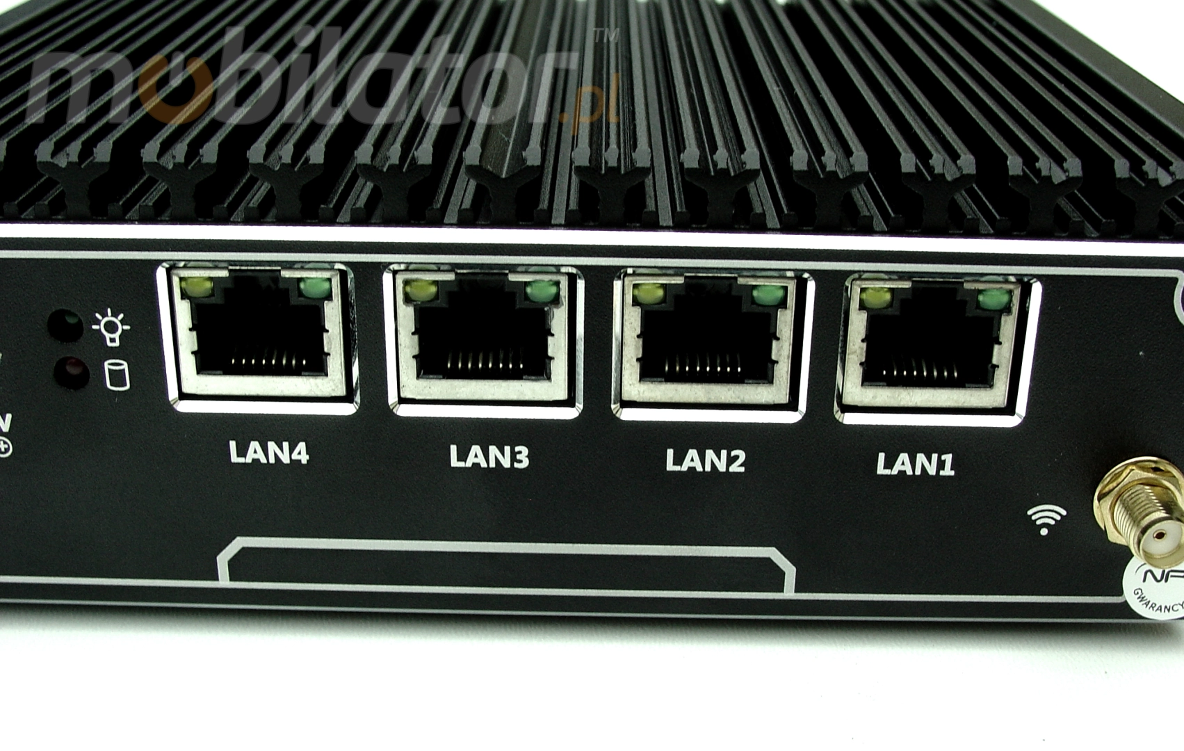 Zintegrowana karta sieciowa Intel 82583V 10/100/1000M LAN oraz moduł WiFi umożliwiają podłączenie urządzenia do sieci. Komputer wyposażony jest w: cztery złącza LAN, jeden port USB 2.0, jeden port USB 3.0, jeden port COM RJ-45, jeden port VGA.