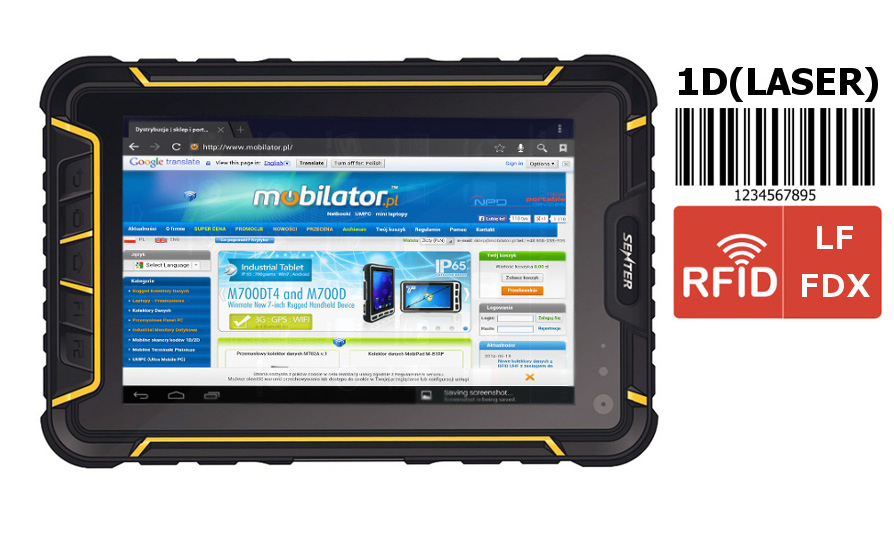 Wzmocniony Tablet przemysłowy - Senter ST907V4 - 1D Honeywell N4313 + RFID LF 134 v.12